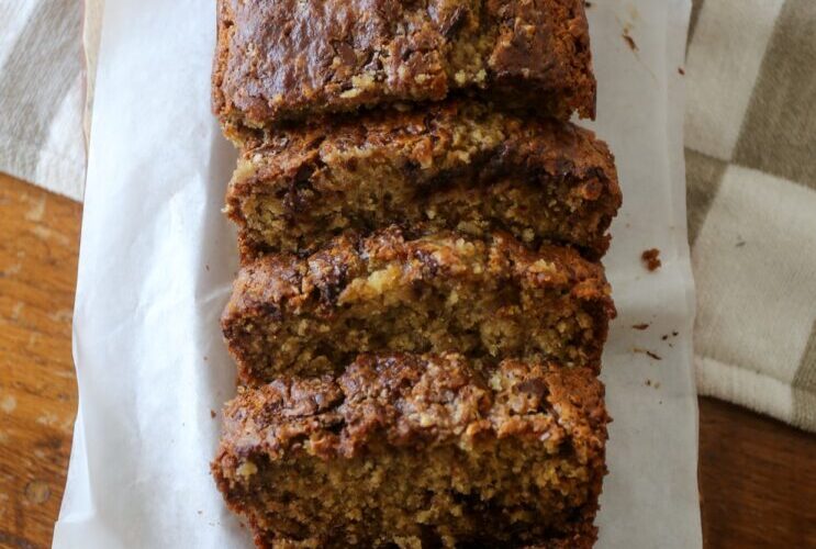Banana bread is one of the simple joys that does not need a reinvention, but some rules are meant to be bent, and this recipe is the exception. I made this several times over the years as a sheet cake, and though delicious, it never felt right. I have now adjusted the recipe for a perfect loaf – because I imagine if banana bread rules do exist, baking in anything other than a loaf or muffin pan would break them. Heath bar crumbles can be found in the baking aisle in most grocery stores, but you could also toss toffee bits and chocolate chips. Allow an excuse for the bananas to go unused and save this recipe for an absolute treat.